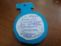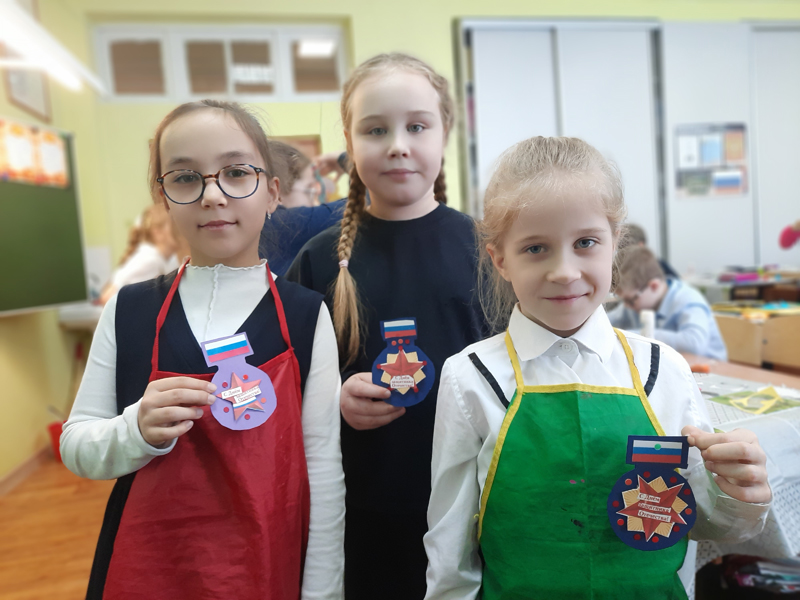 Все медали получились яркими, оригинально украшенными и неповторимыми. Мальчишки и девчонки рассказали, что свои маленькие награды они вручат любимым отцам, дедушкам, братьям или одноклассникам.