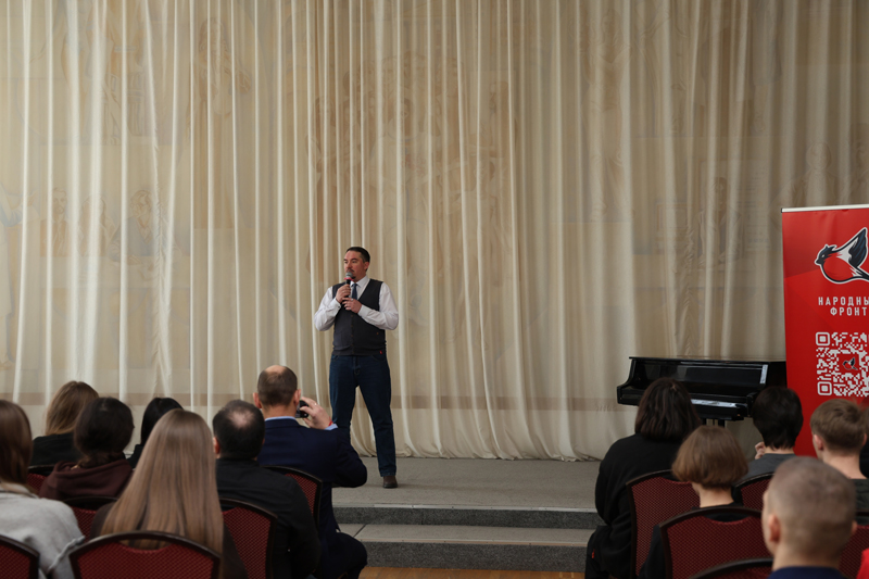 С приветственным словом к собравшимся обратился руководитель регионального отделения Глеб Владимирович Шабонин. Глеб Владимирович рассказал о своей гуманитарной поездке на Донбасс в зону Специальной военной операции. Основная миссия «Народного фронта «За Россию» сейчас – помощь ребятам на линии боевого соприкосновения.