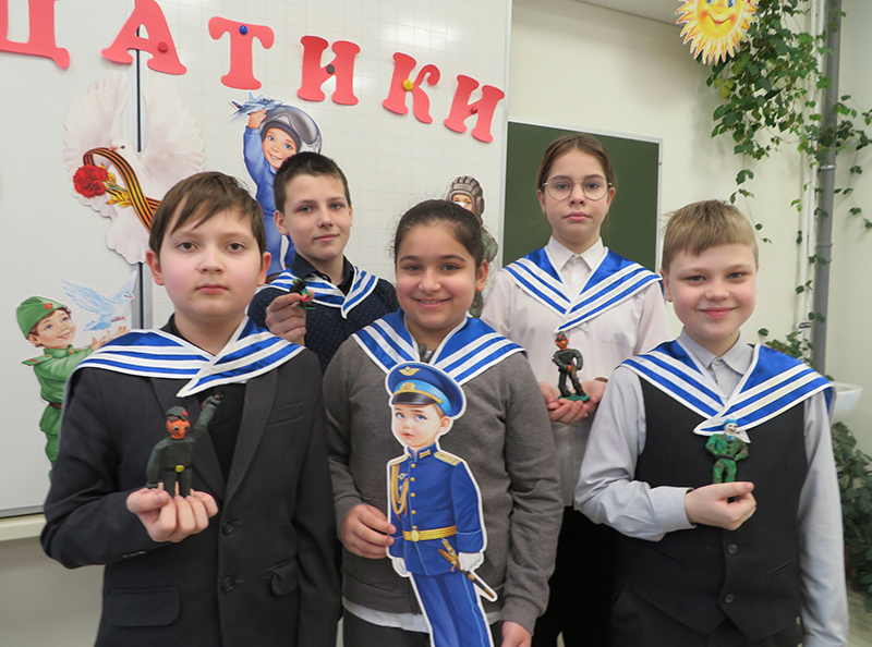 Учащиеся специально для программы подготовили солдатиков, выполненных из различных материалов. Поделки получились красивыми и праздничными, а ребята приложили усилия и фантазию.