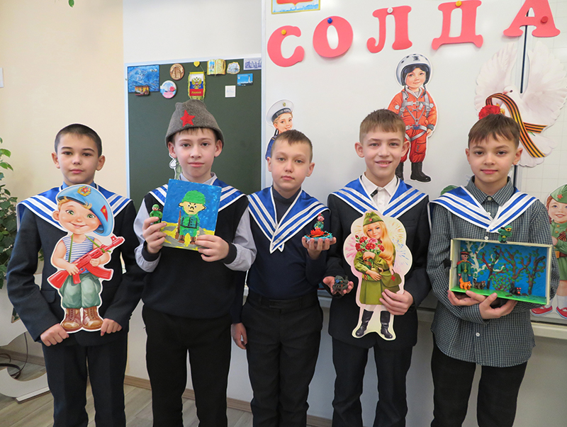 Школьники рассказали о том, какими качествами должен обладать российский солдат, узнали об истории Дня защитника Отечества, о роли армии в защите страны и о том, какие виды войск есть в Российской армии.