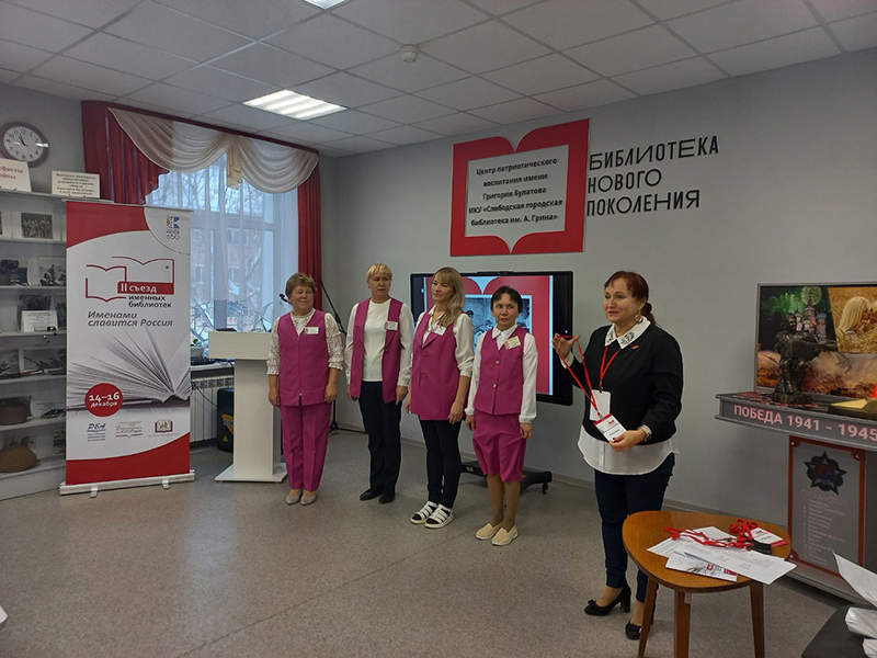 Опыт работы библиотек Рязанской области был представлен на выездной секции съезда в г. Слободской в городской библиотеке имени Александра Грина. Коллеги из других городов выступили с докладами, посвященными популяризации имен, которые носят их библиотеки.