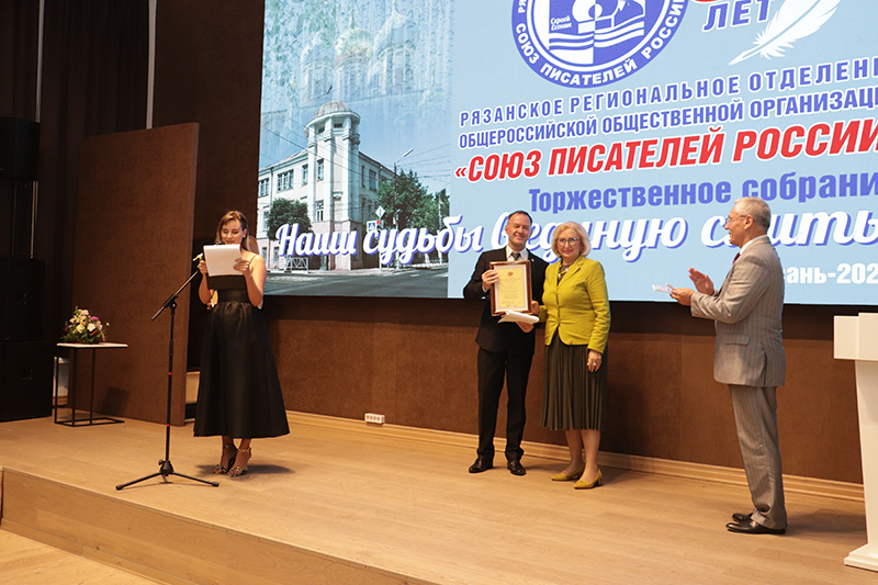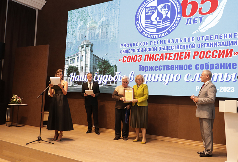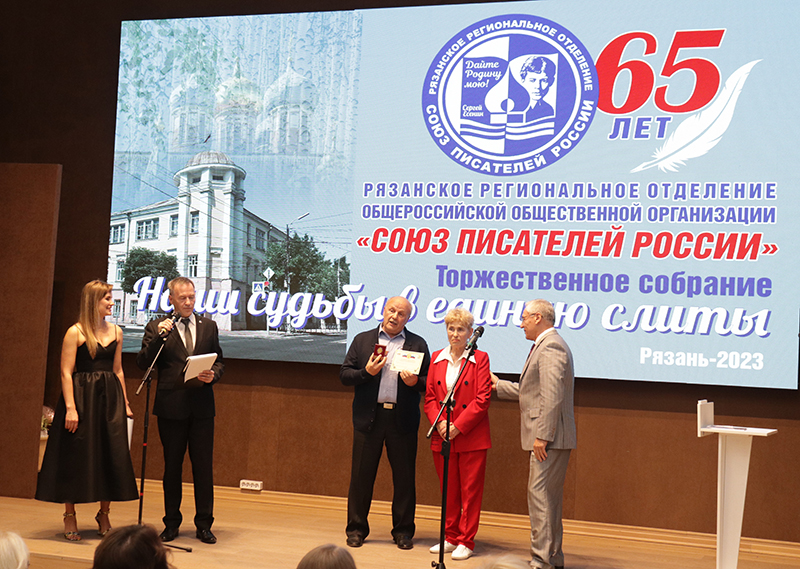 Рязанское региональное отделение Союза писателей России занимает видное место в культурном пространстве Рязанской области. Юбилярам вручили награды депутат Рязанской областной Думы, заместитель председателя Комитета Рязанской областной Думы по экологии и природопользованию Татьяна Анатольевна Баринова и глава муниципального образования, председатель Рязанской городской Думы Татьяна Николаевна Панфилова.