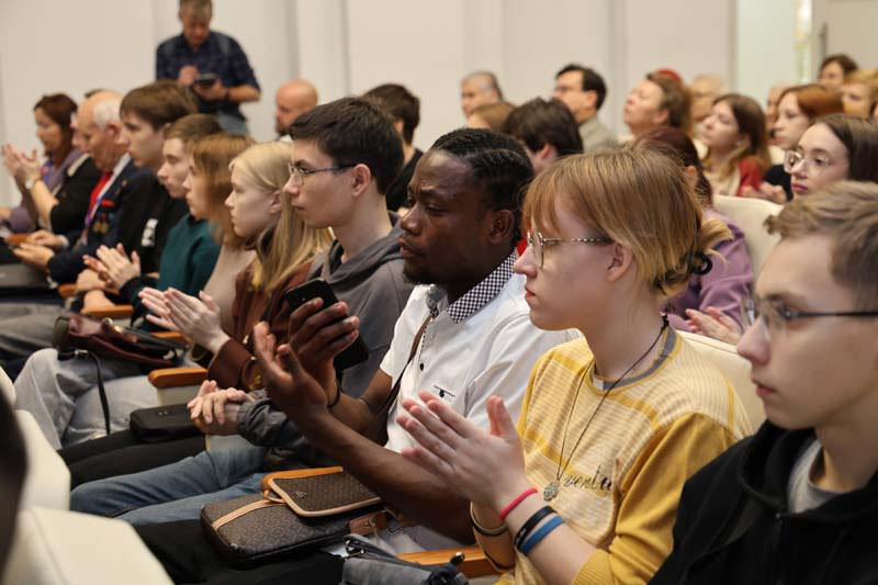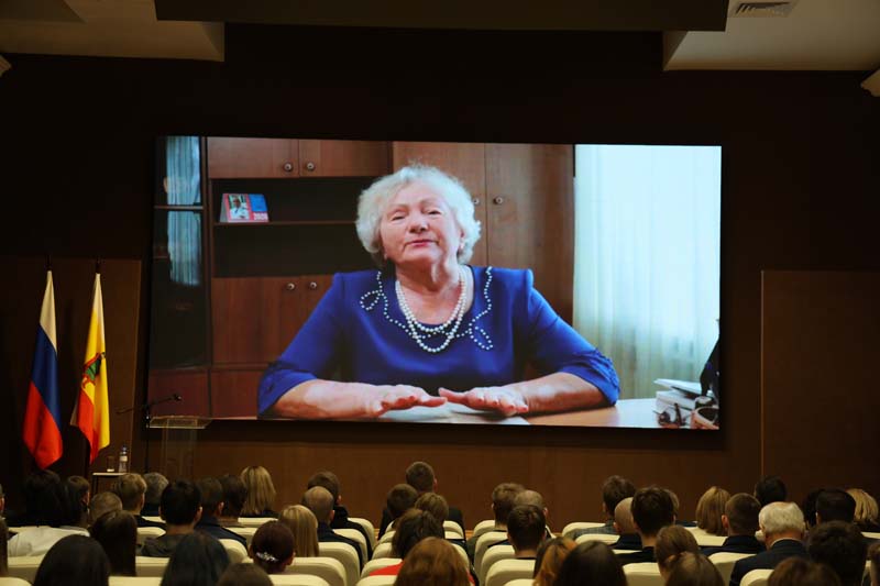 Прозвучали видеоприветствия Анны Геннадьевны Малой, директора средней общеобразовательной школы № 547 Красносельского района г. Санкт-Петербурга, Татьяны Ивановны Зубаревой, директора Кировского областного государственного бюджетного учреждения культуры «Музей К.Э. Циолковского, авиации и космонавтики», Тамары Дмитриевны Филатовой, советника директора «Музея-заповедника Ю.А. Гагарина», племянницы первого космонавта планеты Юрия Алексеевича Гагарина.