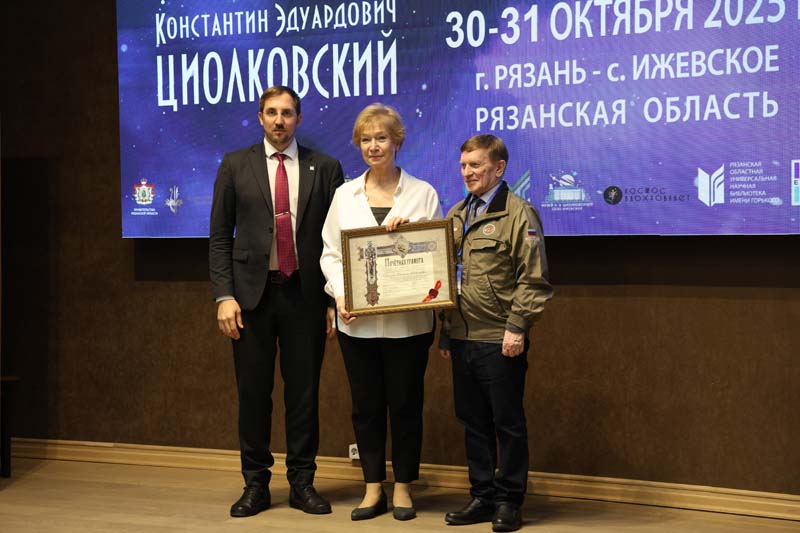 Николай Николаевич Медведков, директор Музея К.Э. Циолковского в селе Ижевское, председатель Совета Рязанской региональной организации Общероссийской общественной организации «Федерация космонавтики России», руководитель благотворительного фонда «Наследие К.Э. Циолковского и современность», член Союза архитекторов России, член Союза машиностроителей России, наградил почетной грамотой фонда летчика-космонавта Российской Федерации, Героя Российской Федерации Алексея Николаевича Овчинина; главного специалиста отдела технической подготовки и проектирования деятельности космонавтов РКК «Энергия» имени С.П. Королева, академика Российской академии космонавтики имени К.Э. Циолковского, правнука Константина Эдуардовича Циолковского Сергея Николаевича Самбурова; директора Рязанской областной библиотеки имени Горького Наталью Николаевну Гришину; главу администрации муниципального образования – Спасский муниципальный район Рязанской области Нину Васильевну Соломонову и других.