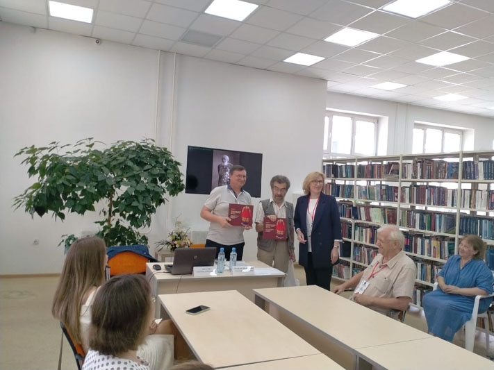 На экспертной площадке Ассоциации древних городов с совместным докладом выступили Александр Владимирович Семенов-Тян-Шанский, председатель правления «Семёновского благотворительного общества», правнук Петра Петровича Семёнова-Тян-Шанского (Санкт-Петербург, Россия) и Александр Александрович Богданов, научный сотрудник Музея-усадьбы П.П. Семенова-Тян-Шанского. Тема их совместного доклада - «Наследие Петра Петровича Семенова-Тян-Шанского. Повороты истории».