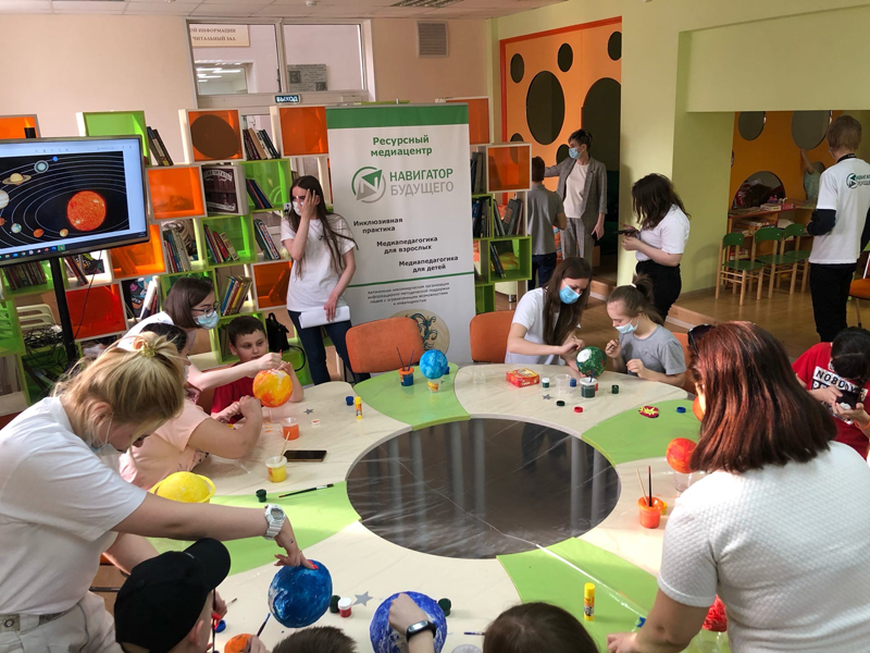 В отделе молодежных проектов и волонтерской деятельности для детей – участников проекта «Коробка вдохновения» – был устроен настоящий праздник: викторины, загадки и мастер-класс по раскрашиванию планет из папье-маше. Инклюзивное общение и развитие мелкой моторики способствуют более быстрой адаптации детей с ОВЗ к внешнему миру и улучшают их навыки коммуникации.