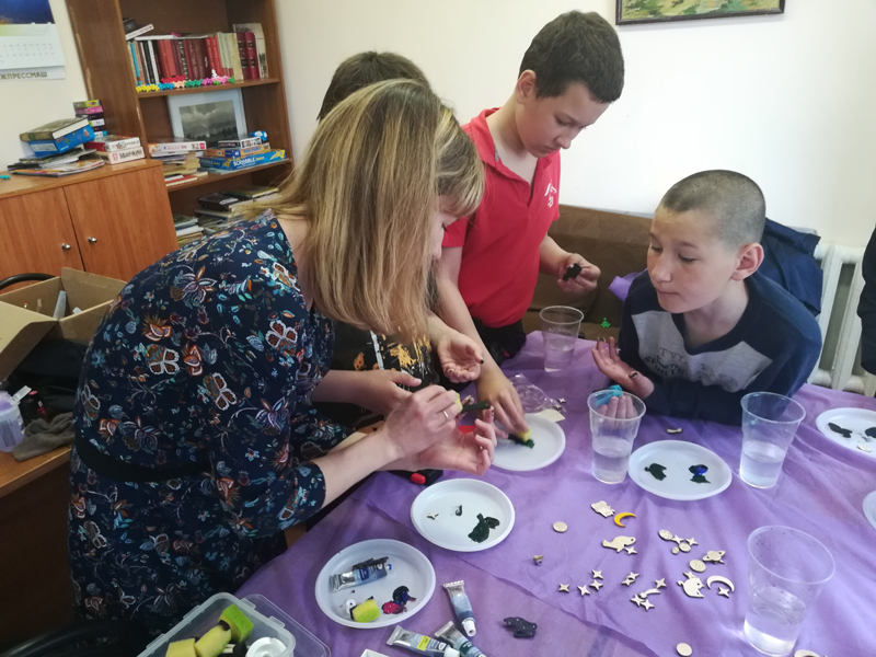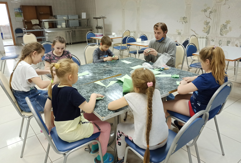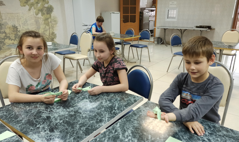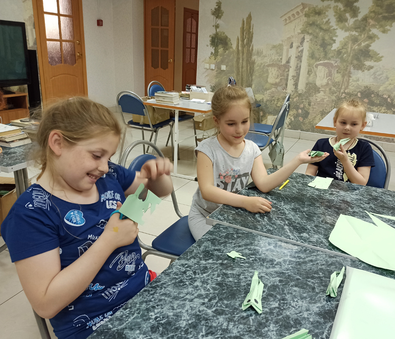 Наши маленькие друзья продолжили знакомиться с миром оригами. Для них были подготовлены и проведены мастер-классы по изготовлению кузнечика, а также ребята сделали значки в виде кошек и планет.