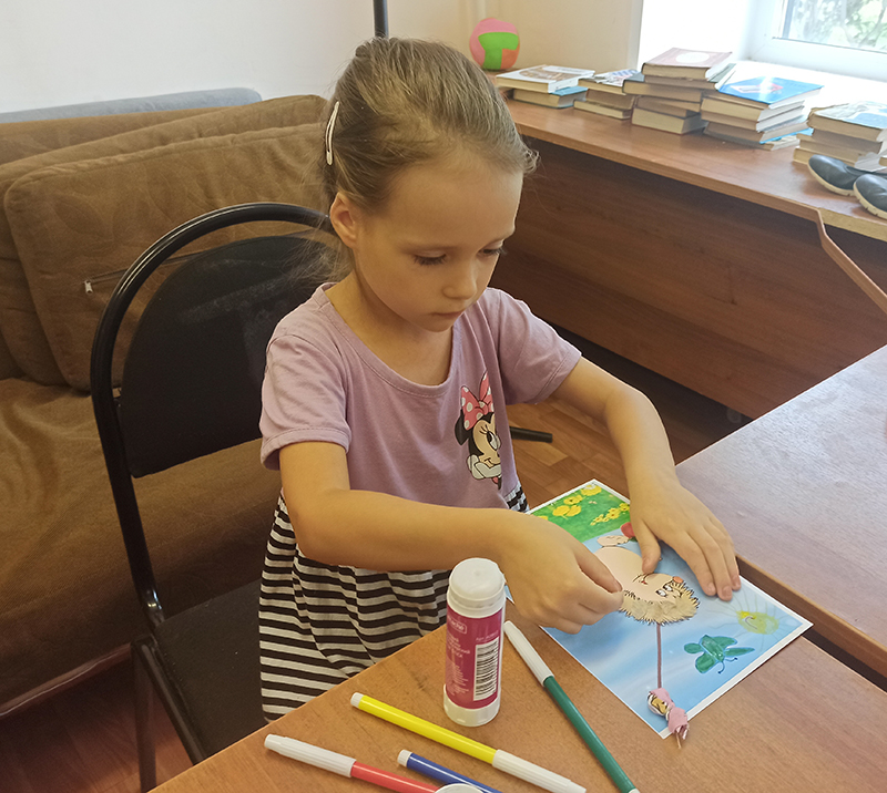 По доброй традиции библиотекари подготовили мастер-класс для наших юных друзей. Из бумаги и природных материалов они смастерили симпатичного ежика.