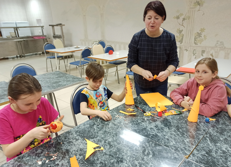Для детей был подготовлен увлекательный мастер-класс по изготовлению объемной игрушки. В этот раз это был улыбчивый оранжевый жираф.