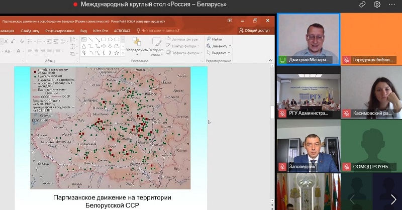 30 июля в Рязанском государственном университете имени С.А. Есенина состоялся Международный круглый стол «Россия – Беларусь: вместе в борьбе с нацизмом». В его работе приняли участие представители министерства территориальной политики Рязанской области, Рязанской городской Думы, сотрудники учреждений культуры и образования городов Гомеля, Луганска, Минска, Москвы, Рязани, Скопина Рязанской области, Витебской и Минской областей Республики Беларусь, члены Общественной палаты Рязанской области, Общественной палаты города Рязани, Российского военно-исторического общества, ветераны Вооруженных сил Российской Федерации, члены «Боевого братства», Благотворительного фонда содействия патриотическому воспитанию граждан «Служу Отечеству», Национально-культурной автономии белорусов в Рязани.