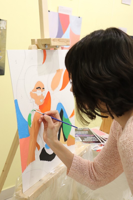 На выставке более 40 работ, выполненных в разных техниках и написанных за 3–4 часа. Большинство авторов никогда не рисовали или давно не брали кисть в руки.