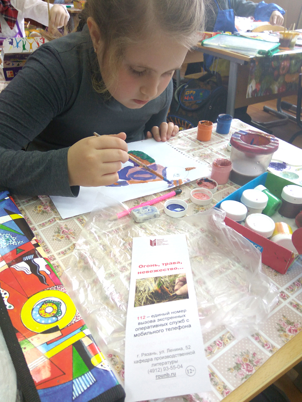 На улицах города прохожим вручались закладки с информацией о пагубных последствиях травяных палов для окружающей среды и для самого человека. Такие же закладки по собственной инициативе распространяли учащиеся 7 «Б» и 8 «Б» классов рязанской школы № 24, присоединившиеся к нашей акции. А для посетителей библиотеки демонстрировались экоролики о страшных результатах поджога травы.
