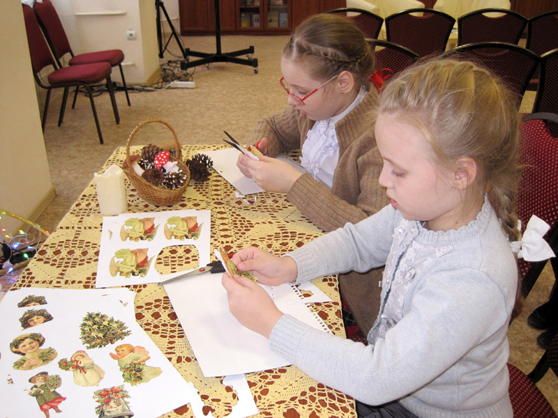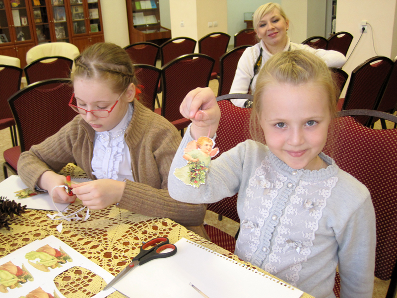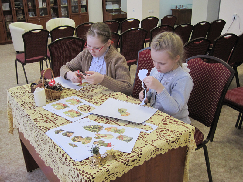 6 и 7 января в краеведческом информационном отделе библиотеки прошли мастер-классы по картонажу «Новые старые сказки». Во время мероприятия юные участники познакомились с историей картонажа, выяснили, что елочные игрушки, выполненные в технике «картонаж» пришли в Россию из Германии. Дрезденский картонаж заказывали по почте: получали большие листы заготовок с нанесенным рисунком и вырубленным силуэтом, вынимали понравившиеся картинки, склеивали и подвешивали на новогоднюю елку.