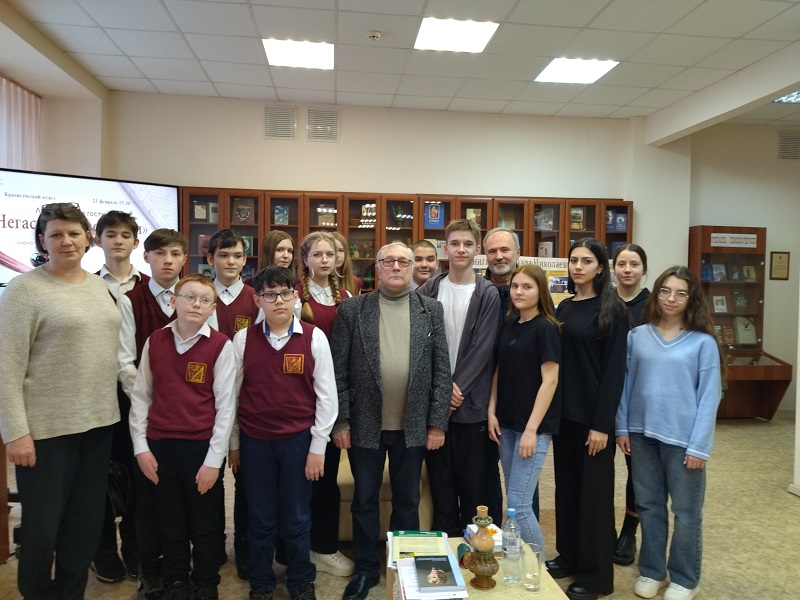 21 февраля в библиотеке имени Горького состоялась встреча юных краеведов, участников клуба «Наследники», с поэтом, писателем, публицистом, членом Союза писателей и Союза журналистов России Александром Николаевичем Потаповым. Мероприятие было посвящено 70-летию со дня его рождения.