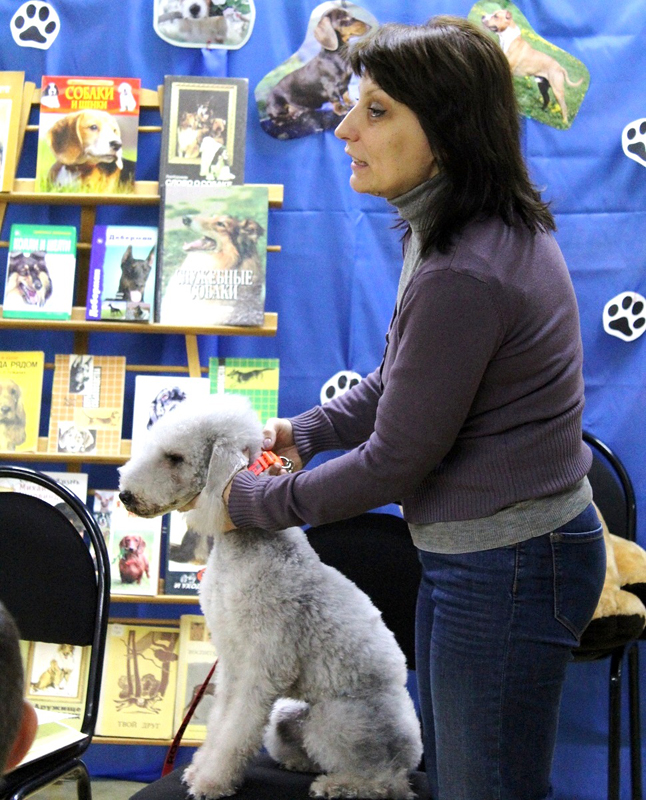 В Рыбновскую центральную детскую библиотеку пришла необычная гостья – собака породы бедлингтон-терьер. На встречу с ней собрались детишки из детского сада № 5.