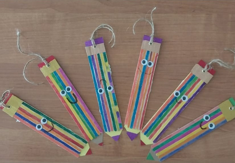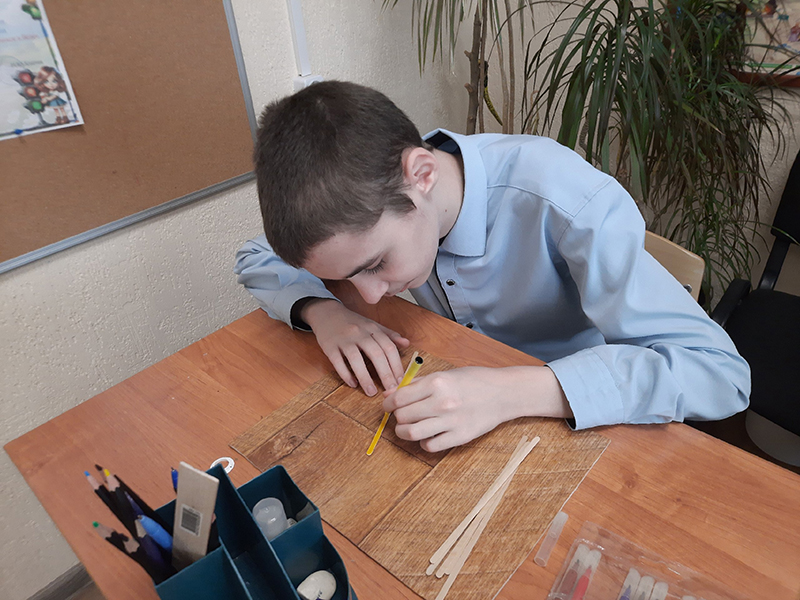 В начале встречи воспитанники Рязанской школы-интерната узнали о предстоящем празднике и его традициях, вспомнили, как работать с разными материалами, как сочетать цвета, выбирать палитру и многое другое. Мальчишки и девчонки с помощью тонких деревянных палочек, скотча и фломастеров сделали весёлые карандаши-закладки, приклеили им декоративные глазки, нарисовали улыбку и обещали подарить необычные сувениры в праздничный день.