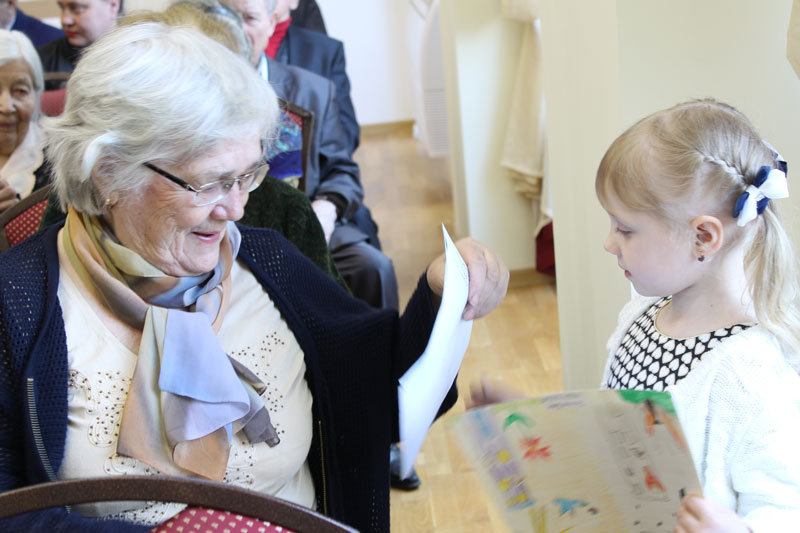 Подарком для ветеранов стало выступление воспитанников детских садов № 20, 32,111, которые прочитали стихи о войне и вручили гостям встречи свои рисунки на тему «Мир без войны».