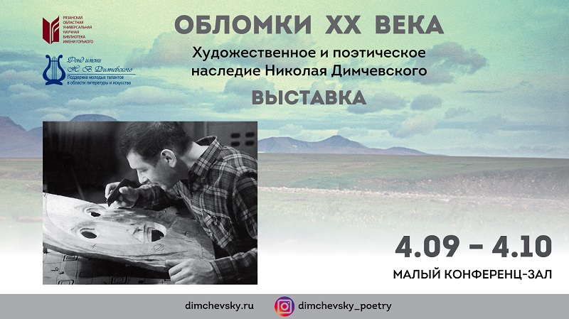 В субботу в Рязанской областной универсальной научной библиотеке имени Горького состоялось открытие выставочного проекта «Обломки ХХ века», посвящённого творческому наследию нашего земляка, писателя, переводчика, журналиста, фотохудожника, резчика по дереву Николая Владимировича Димчевского (1926–2002). Выставка, подготовленная библиотекой совместно с Фондом имени Н. В. Димчевского, приурочена к 95-летию со дня рождения писателя.