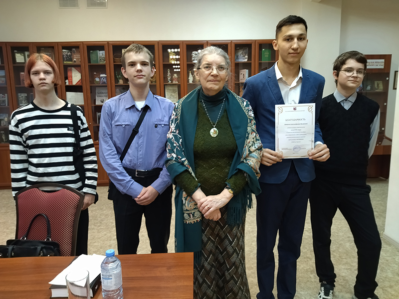 17 апреля в краеведческом отделе библиотеки имени Горького состоялась встреча членов молодежного клуба краеведов «Наследники» с кандидатом филологических наук Ириной Владимировной Грачевой. Мероприятие было приурочено к 215-летию со дня рождения Николая Васильевича Гоголя. Участниками стали студенты Рязанского филиала Петербургского государственного университета путей сообщения имени Александра I и учащиеся трех школ – 11, 30 и 47-й.