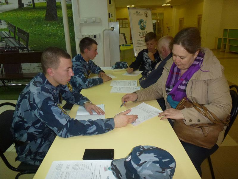 На площадке областной библиотеки имени Горького курсанты военно-патриотического клуба «Поиск» Академии ФСИН России встретились с родственниками солдат, не вернувшихся с войны. Они помогли им заполнить анкету-запрос о розыске, установлении судьбы и месте захоронения военнослужащих. После окончания акции специалисты займутся поиском информации о фронтовиках в электронных базах данных Министерства обороны РФ и архивах. Результаты этой работы поисковики передадут заявителям.
