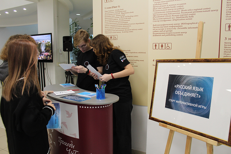 Участников интерактивной игры по станциям «Русский язык объединяет» ждали памятные подарки от библиотеки – сувениры акции «Ночь искусств».