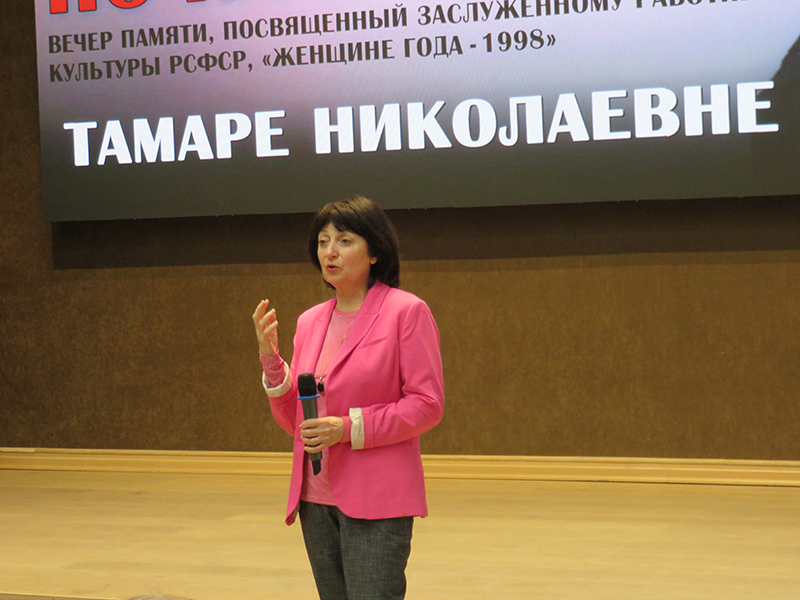 Открыла вечер директор Рязанской областной универсальной научной библиотеки имени Горького, председатель Общественной палаты Рязанской области, заслуженный работник культуры Российской Федерации, председатель регионального отделения Союза женщин России, Почетный гражданин Рязанской области Наталья Николаевна Гришина. Она с большой любовью говорила о том, каким удивительным человеком была Тамара Николаевна, какой глубокий след она оставила в сердцах тех, кто с ней общался и как много она сделала для развития культуры.