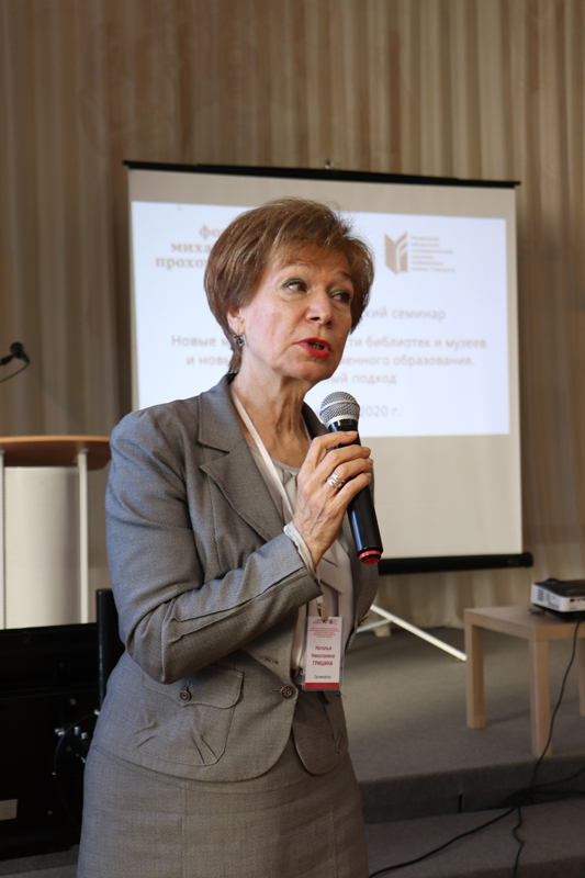 С приветственным словом к участникам мероприятия, – представителям учреждений культуры и образования Рязанской, Воронежской, Тамбовской и Липецкой областей, – обратились Ольга Валентиновна Синицына, искусствовед, член Экспертного Совета Фонда Прохорова, независимый эксперт по библиотечному и музейному развитию и международному культурному сотрудничеству; Наталья Николаевна Гришина, директор библиотеки имени Горького; Валентина Ивановна Тислянкова, ведущий специалист операционных проектов Фонда Михаила Прохорова, куратор конкурса «Новая роль библиотек в образовании».