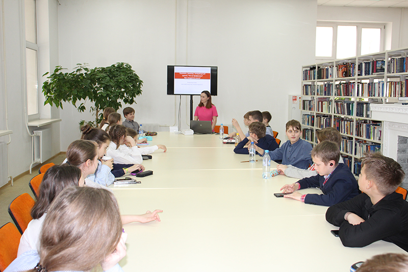 Сегодня в библиотеке имени Горького состоялась встреча детского писателя, сказкотерапевта Юлии Хомяковой с учащимися гимназии № 5.
