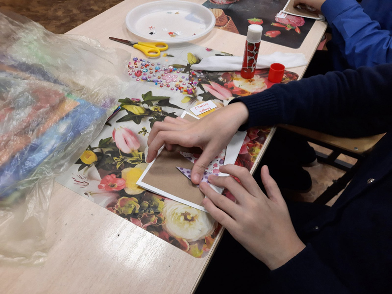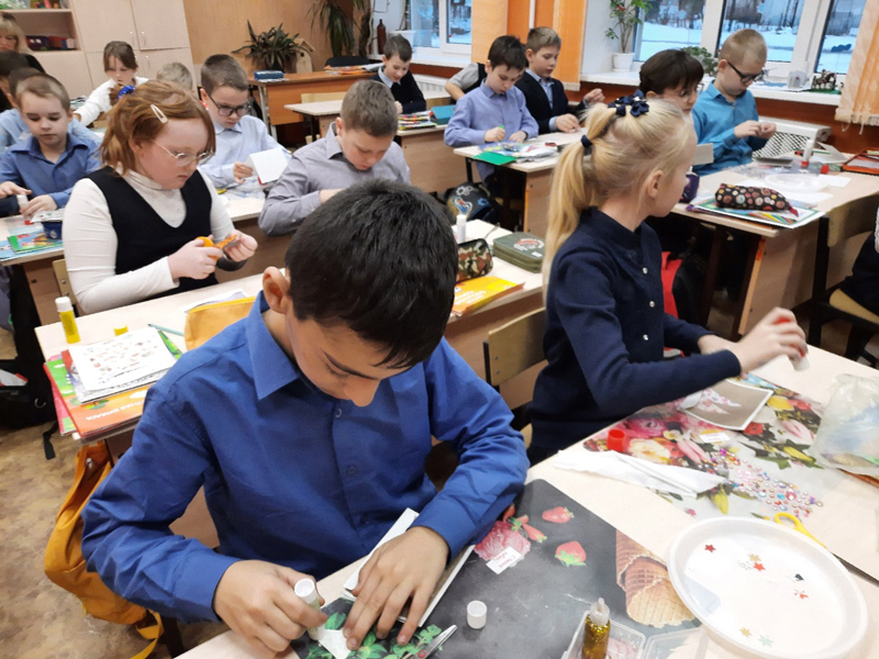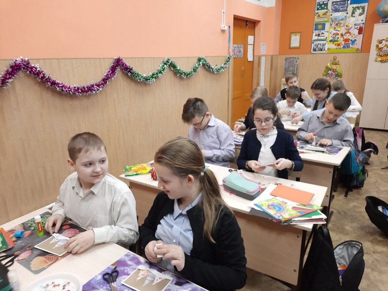 Новогоднее настроение царило сегодня и у ребят 4 класса школы № 36 г. Рязани. Для них сотрудники Центра литературы по искусству провели мастер-класс по изготовлению новогодней открытки.