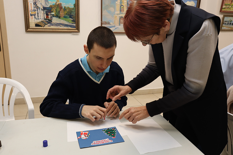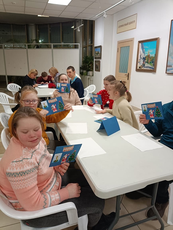 В конце мероприятия ребята сделали новогоднюю открытку для своих родных и близких. Библиотечный Дед Мороз передал в подарок детям расписные пряники.