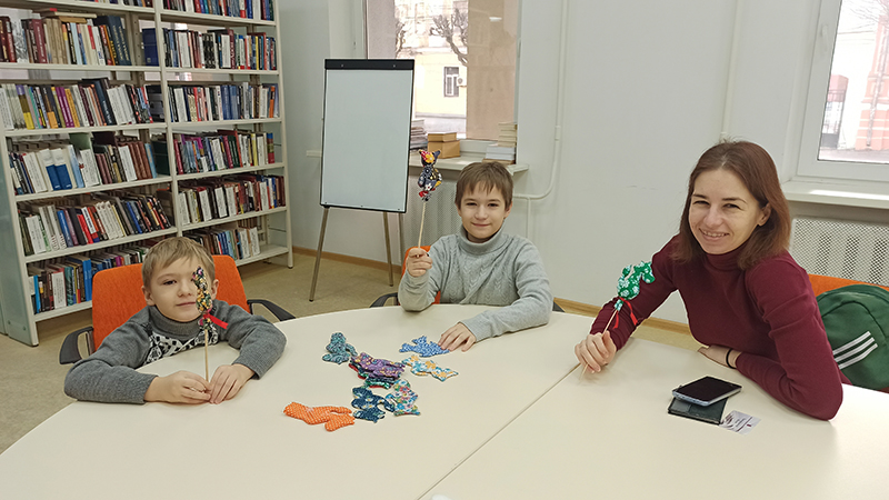 В морозные снежные дни в библиотеке для наших любимых читателей прошли праздничные мастер-классы «Сказочный Дракоша» и «Новогодний Читарик», которые собрали тех, кто любит дарить необычные поделки и делать оригинальные вещи своими руками.