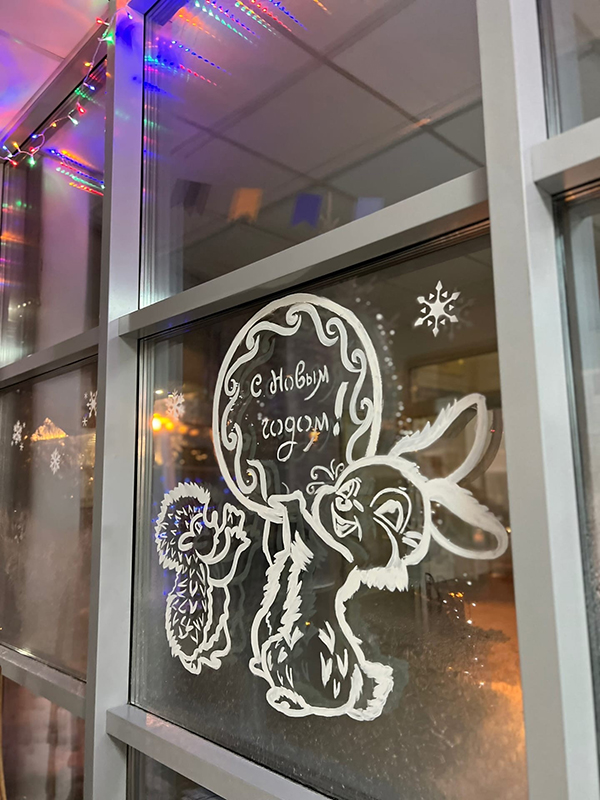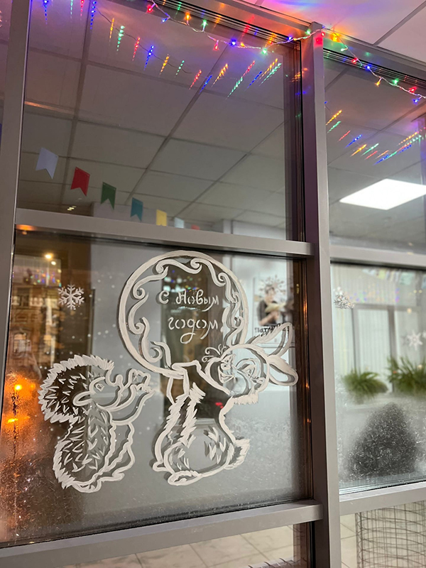 Библиотека имени Горького приняла участие в акции #новогодниеокна2023 . Мы не могли не обойти тему символа 2023 года и решили украсить окна по мотивам новогодних открыток художника Владимира Ивановича Зарубина. Морозные узоры на окнах, милые новогодние зайцы, снежинки и бумажные флажки, все это создает праздничную новогоднюю атмосферу и кажется, что еще совсем чуть-чуть и произойдет настоящее новогоднее чудо.
