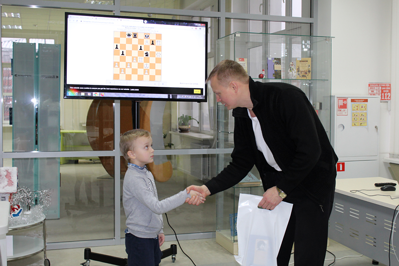 В рамках праздничной программы библиотеки «Новогодняя канитель» состоялись показательные соревнования по шахматам с участием детей в возрасте от пяти до семи лет.
