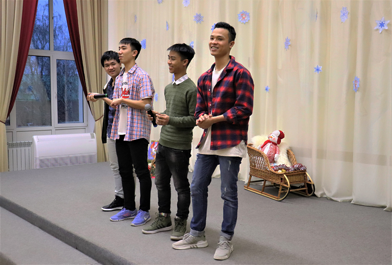 И, конечно, какая елка без Дедушки Мороза и его внучки Снегурочки! Гости порадовали их яркими творческими номерами: исполнили русскую песню «В лесу родилась елочка», песни на вьетнамском и французском языках, а также музыкальную композицию «Ар минда мэ ром». Под искренние аплодисменты и дружеский смех иностранные гости получили новогодние подарки на память.