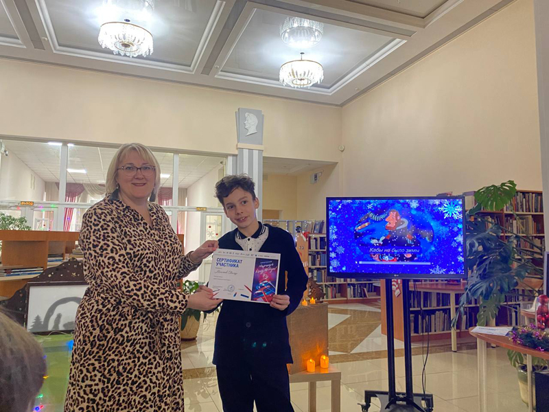 В конце встречи мальчишкам и девчонкам торжественно вручили сертификаты участников Международного конкурса «Нарисуй "Ёлку Победы"» в номинации «Ёлочная игрушка 1945 года» и новогодние подарки.