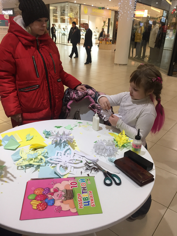 Новый год – время волшебства и исполнения желаний. В Мобильной точке областной библиотеки в торговом центре «М5 Молл» для маленьких и взрослых гостей сотрудники отдела хранения основного фонда провели мастер-класс «Новогодняя снежинка» в технике квиллинг.