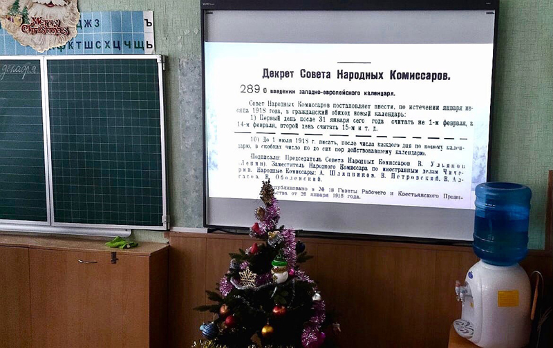 В начале они перенеслись назад в прошлое, знакомясь с традициями славян отмечать смену года. Разбирались в хитросплетениях названий славянских месяцев и их соотношениях с современными. Выясняли, кому принадлежит идея отмечать Новый год 31 декабря, кто первый нарядил ёлку, почему в России Новый год справляют дважды.
