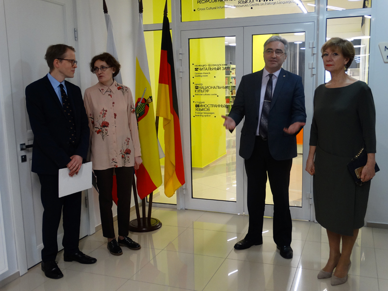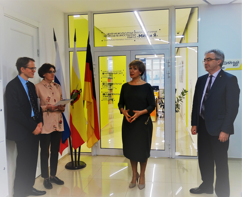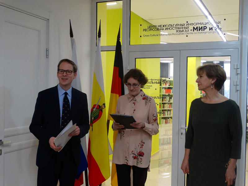 Одним из первых обновленный центр посетил министр культуры и туризма Рязанской области В.Ю. Попов, который подчеркнул значимость этого события для культурной жизни региона. Почетным гостем библиотеки в этот день стал региональный уполномоченный Посольства ФРГ в РФ господин Ф. Клаустермайер. По его мнению, деятельность немецкого-французского читального зала вносит значимый вклад в добрые российско-германские взаимоотношения, и книги, как проводники культуры, весьма этому способствуют. Директор библиотеки Н.Н. Гришина сердечно поблагодарила всех, кто способствовал созданию и развитию нового библиотечно-информационного пространства, и пригласила принять участие в мероприятиях Центра МИР И Я.