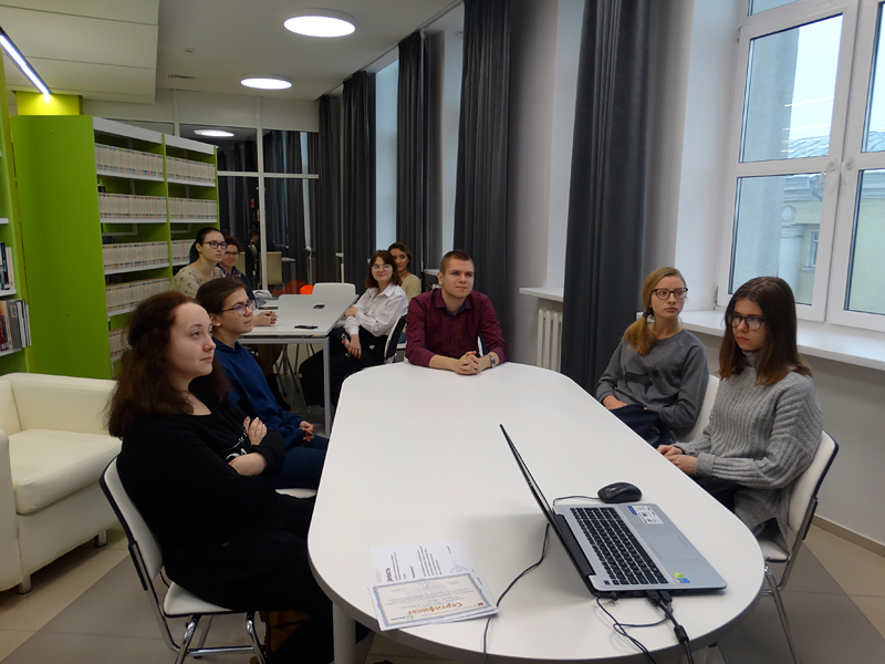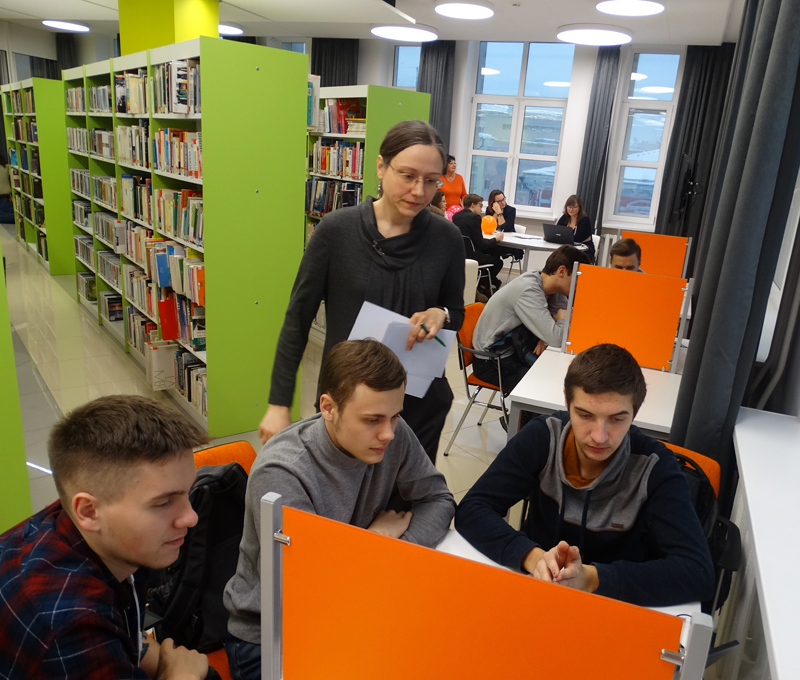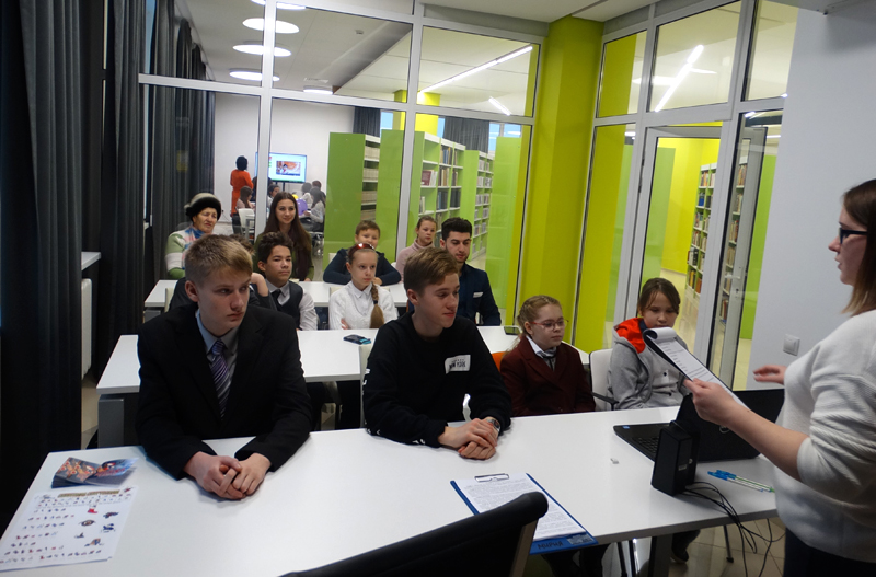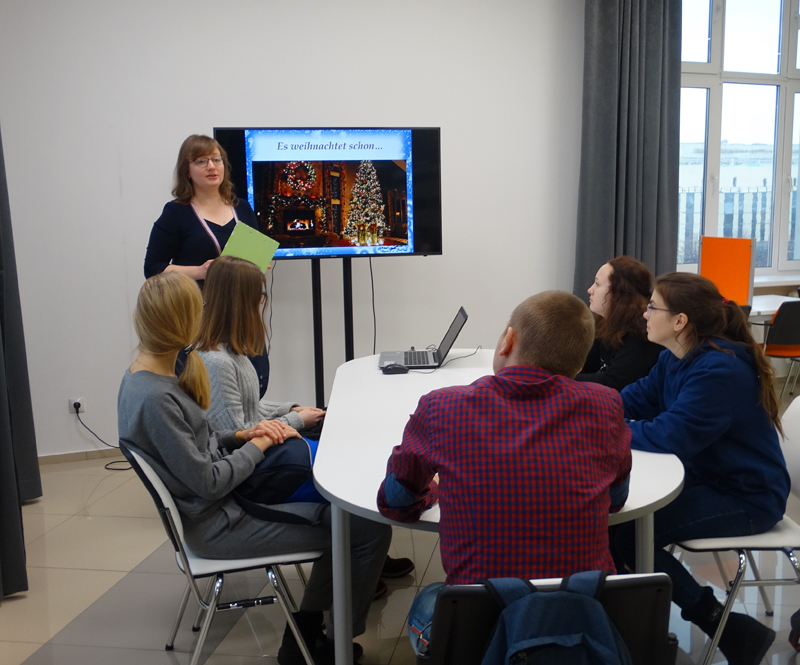 В этот день гостей ожидал самый настоящий калейдоскоп событий: в студии иностранных языков для школьников состоялись интерактивные уроки английского языка «Британские ученые доказали» и «Английское Рождество» по материалам международной организации «Британский Совет», а в зоне клубной работы прошли интерактивные уроки немецкого языка «Рождество в Европе» и «С наукой по пути» по материалам проекта Немецкого культурного центра имени Гете «Детский онлайн-университет». Благодаря современной технической оснащенности центра студенты рязанских вузов познакомились с электронными базами удаленного доступа ScienceDirect и Springer, которые содержат авторитетные и высоко цитируемые электронные журналы, более 200 000 книг, а также специализированные базы данных по всем областям науки и техники на иностранных языках. В продолжение дня для всех увлеченных иностранными языками, традициями и культурой других стран работали языковые клубы по интересам.