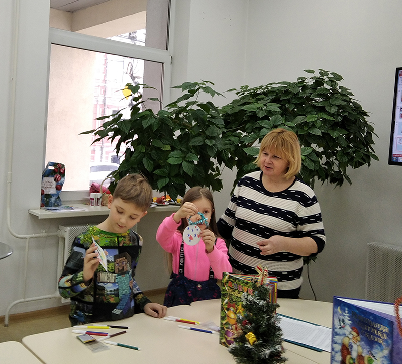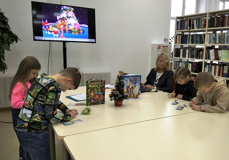 Ребят познакомили с историей празднования Нового года на Руси, рассказали сказку о том, как появился Дед Мороз. Из познавательной и красочной презентации дети узнали, что главный волшебник страны живет в Великом Устюге в красивом тереме, дорога к которому идет по сказочным тропам. Юные читатели слушали стихи и разгадывали загадки, смотрели отрывки из мультфильмов, участвовали в предновогодних забавах и конкурсах. На творческом мастер-классе каждый старался смастерить и украсить елочную игрушку-открытку, которая станет подарком родным и друзьям.