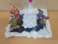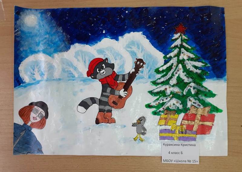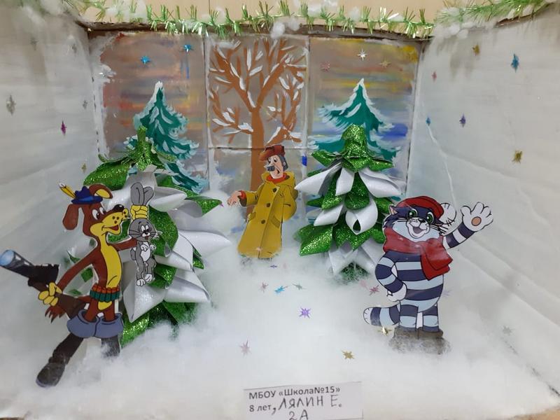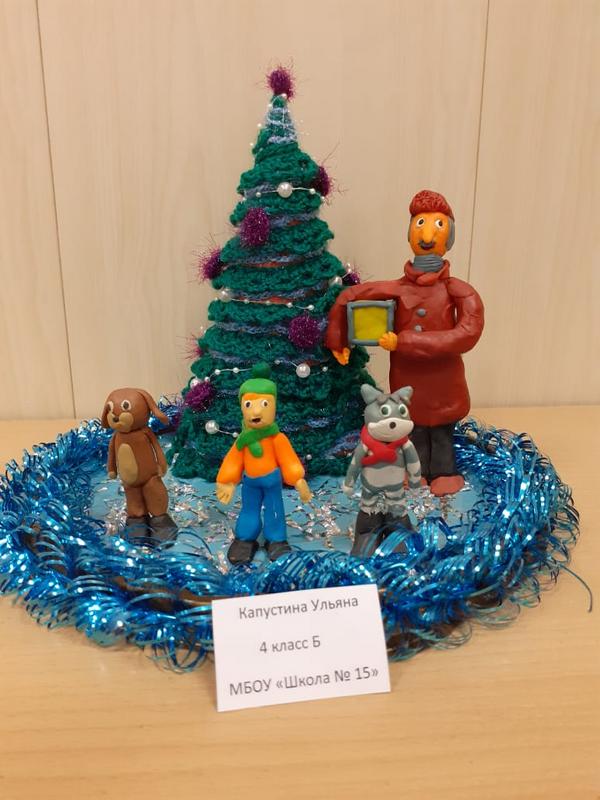 В работе дети использовали самые доступные и популярные материалы: пластилин, текстиль, бумагу, нитки, пуговицы, новогоднюю мишуру и пайетки. Поделки получились яркими и веселыми. Дядя Федор и его родители, кот Матроскин и пес Шарик, почтальон Печкин и галчонок Хва – все собрались на встречу Нового года у ребятишек школы № 15.