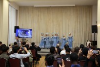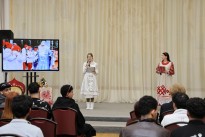 Ведущие в образах Снежанушки и Снегурочки предложили гостям совершить три волшебных шага к знакомству с традициями русского Нового года: открыть символы, поделиться радостью и почувствовать дух праздника. Участники в игровой форме угадывали главные атрибуты Нового года, поздравляли друг друга на родных языках. Они познакомились с народными игрушками – матрешкой, которая воплощает образ крепкой русской семьи, и неваляшкой – символом стойкого, жизнелюбивого духа русского народа.