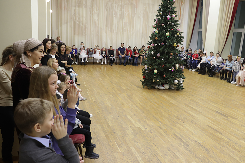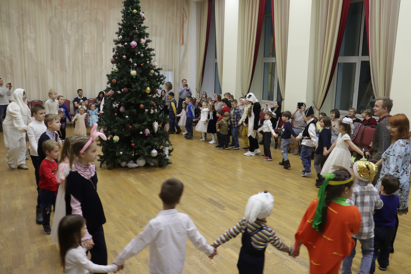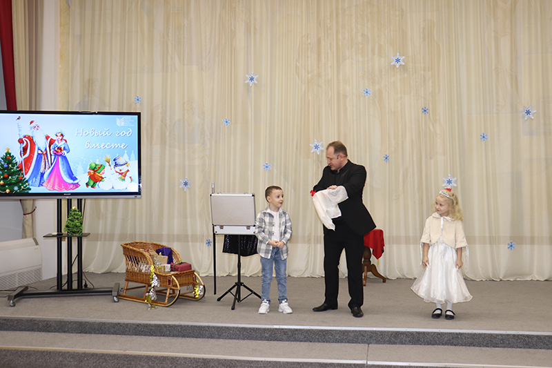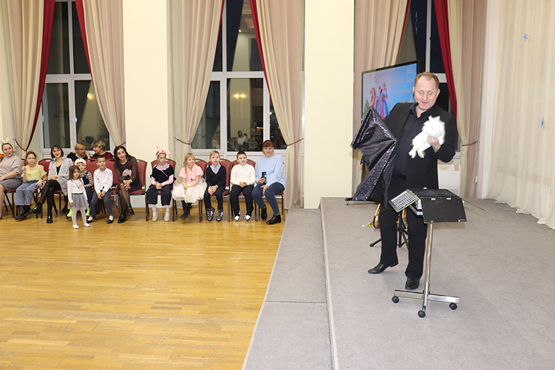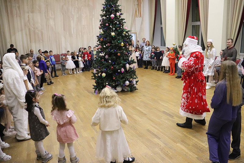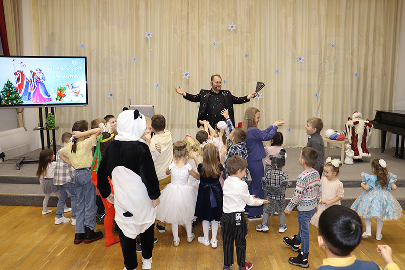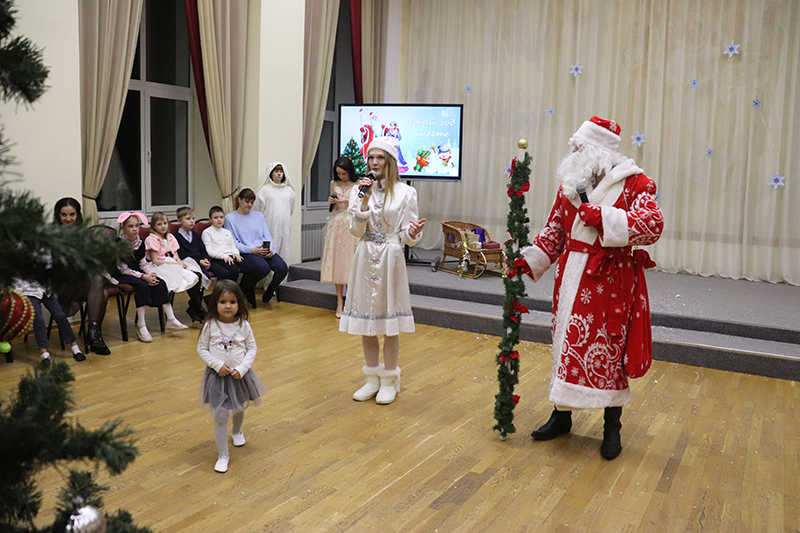 В удивительном приключении ребята помогли сказочным героям Добрыне и Метелице вспомнить волшебные слова, с помощью которых Дед Мороз и Снегурочка приехали на ёлку. С большим азартом и интересом дети справились со всеми испытаниями, которые приготовила для них Баба-Яга: разгадывали загадки, танцевали, а также увидели волшебное представление фокусника. Предновогодним настроением поделились с гостями участники детского музыкального театра «Созвездие добра».