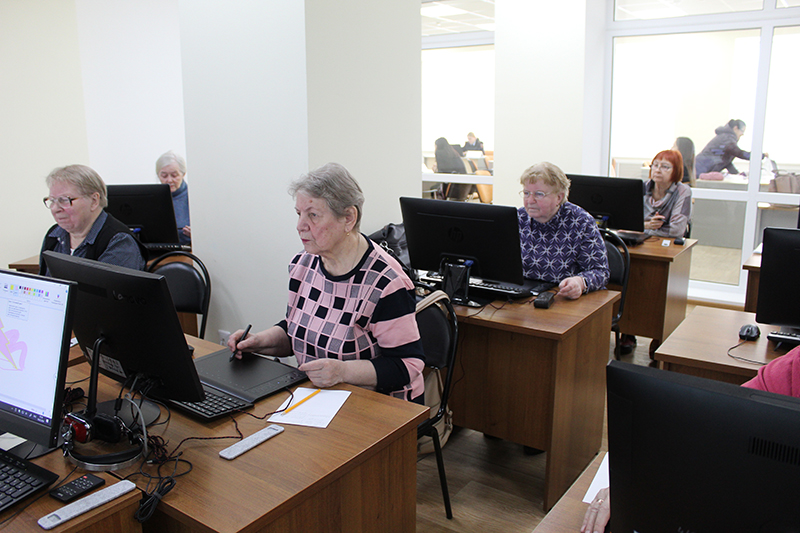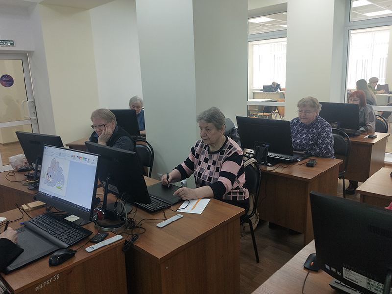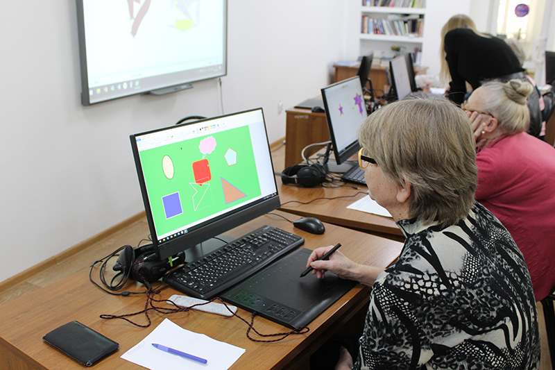 Сегодня графический планшет как новый инструмент прикосновения к жизни осваивала новая группа компьютерных пользователей старшего возраста – члены читательского объединения «Свет в окне».