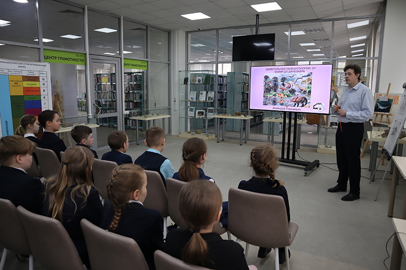 13 мая в библиотеке имени Горького прошла увлекательная и интересная встреча с Алексеем Валентиновичем Пахневичем, старшим научным сотрудником Палеонтологического института имени А.А. Борисяка РАН.