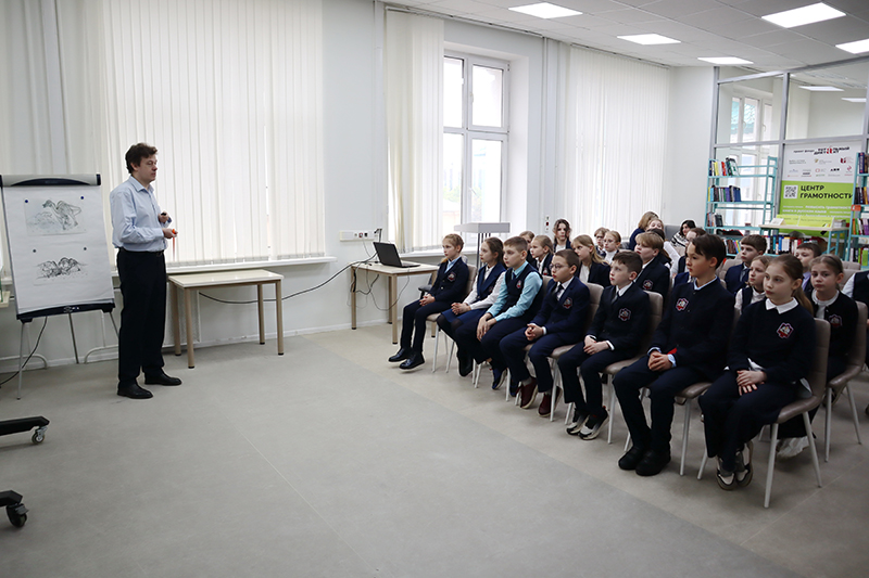 Лекция сопровождалась презентацией, в ходе которой ребята познакомились с историей развития Земли, совершили настоящее палеонтологическое путешествие, узнали о том, как изменился животный и растительный мир нашей планеты за последние 550 миллионов лет.