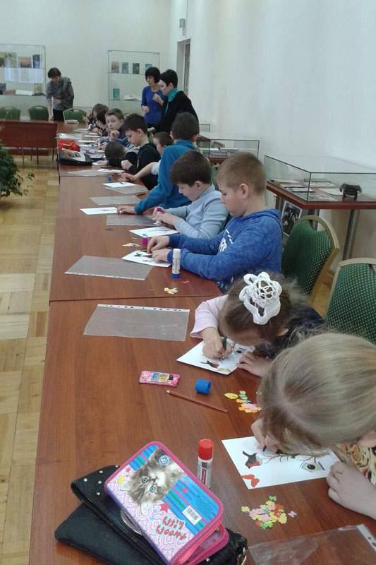 С большим удовольствием юные гости библиотеки мастерили открытки «Кошка на окошке» и аппликации из природных материалов «Птицы родного края».