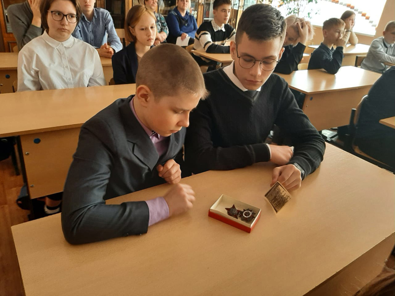 Рассказ библиотекаря Веры Николаевны Волковой о своем отце, ветеране Великой Отечественной войны Николае Тимофеевиче Холоде, который за боевые подвиги был награжден орденом Красной Звезды, вызвал у ребят чувство уважения к героическому подвигу земляка. С большим вниманием школьники смотрели фрагменты военной кинохроники и слушали песни об орденах.