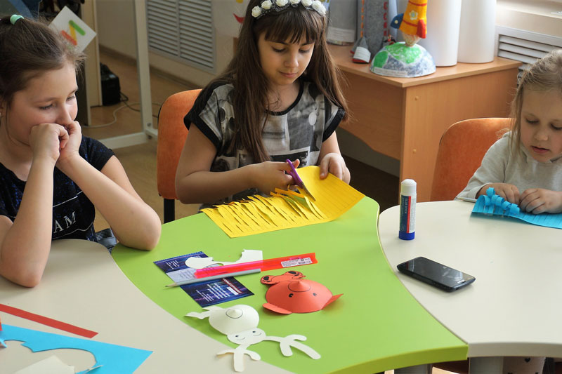 На очередном мастер-классе в библиотеке ребята научились делать объемную аппликацию. Звучит необычно, но сделать ее несложно, достаточно распечатать готовые шаблоны или схемы. Для работы понадобятся ножницы, клей, картон и цветная бумага.
