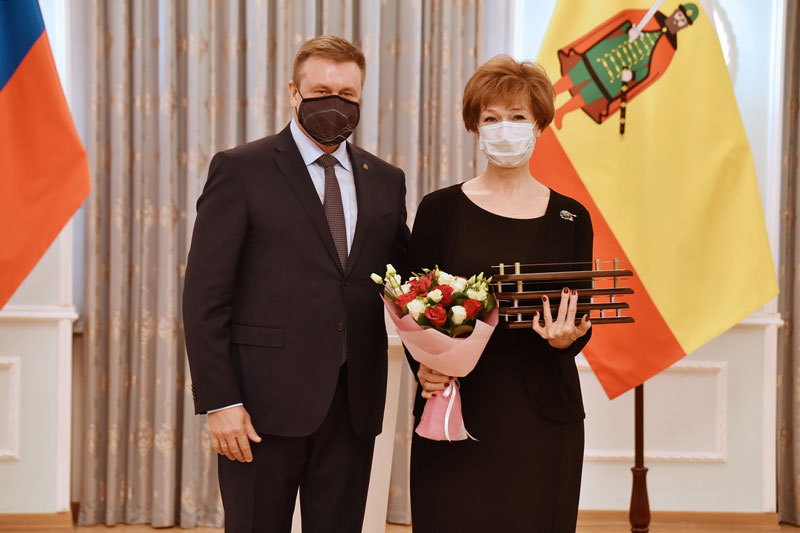 Глава региона Николай Любимов вручил директору Рязанской областной универсальной научной библиотеки имени Горького Наталье Гришиной дипломы победителя и призера регионального этапа Всероссийского конкурса «Российская организация высокой социальной эффективности» в 2020 году. Торжественная церемония награждения прошла в правительстве Рязанской области.